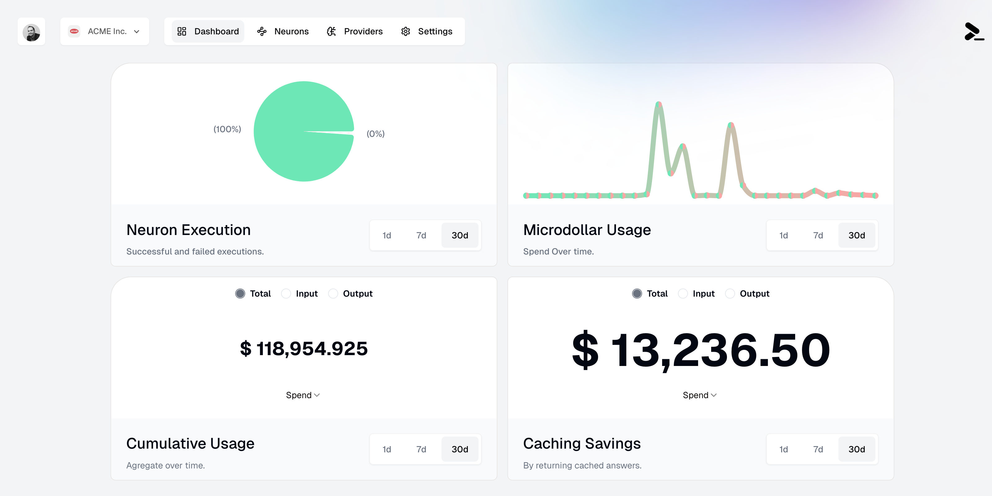 The Neuron Execution panel shows the success rate of your Neuron executions through a pie chart visualization. It displays:- Successful executions (green)