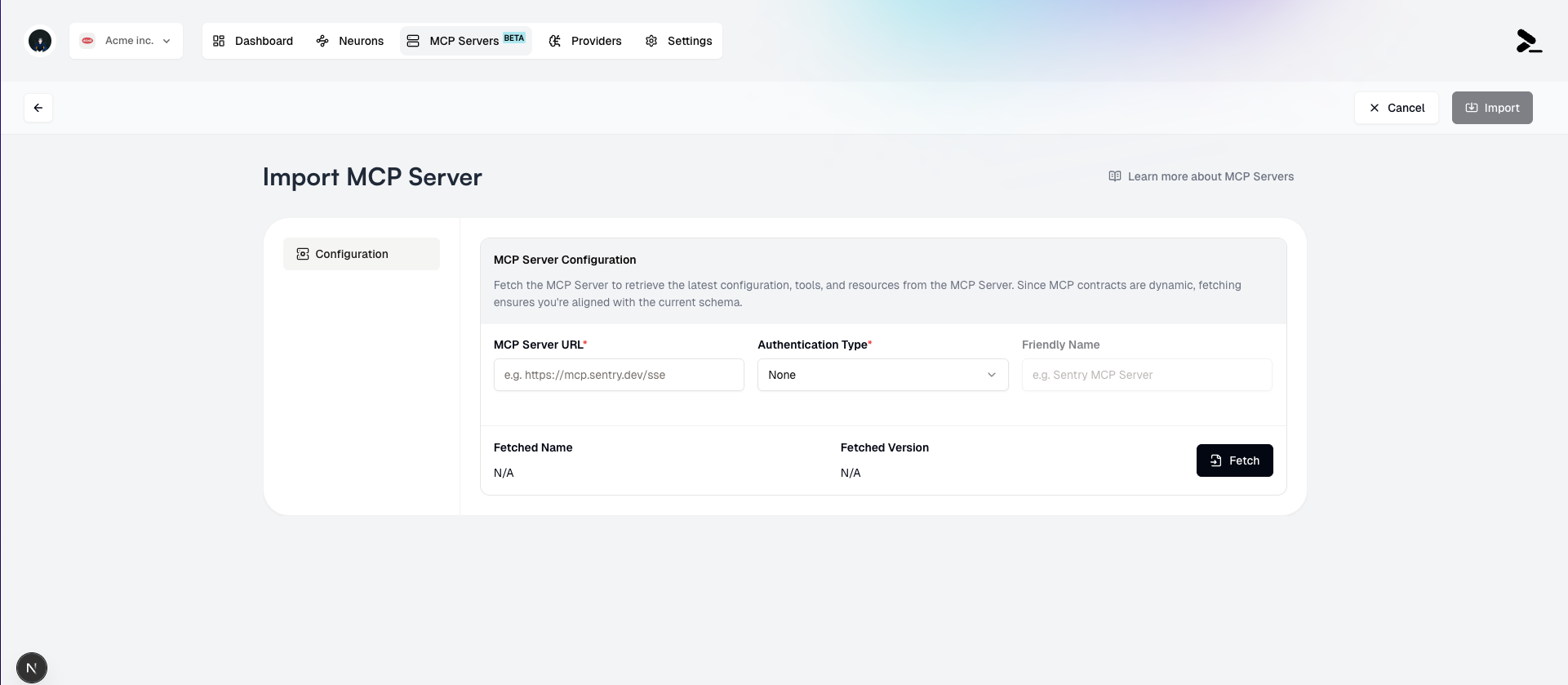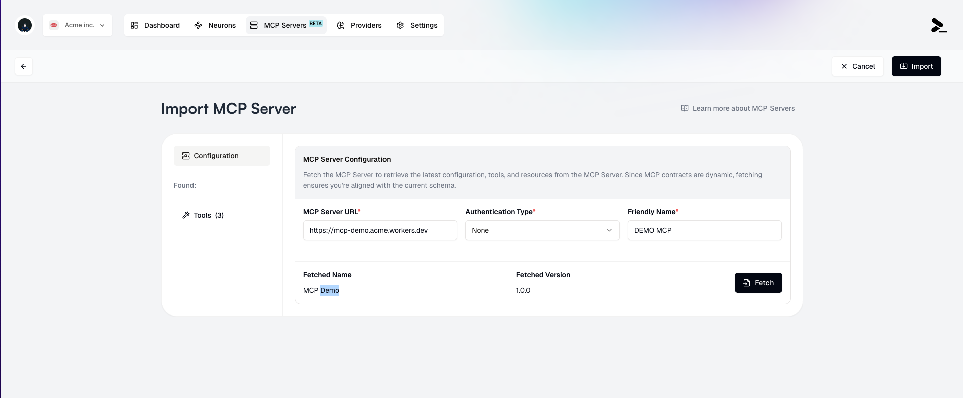 - MCP Server URL: The URL of the MCP Server you want to import.