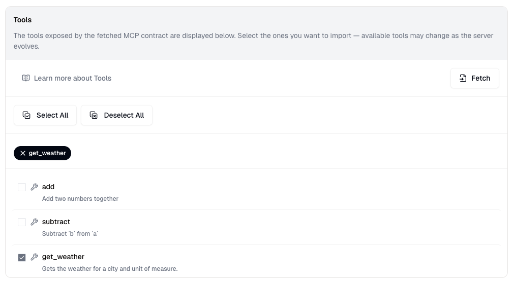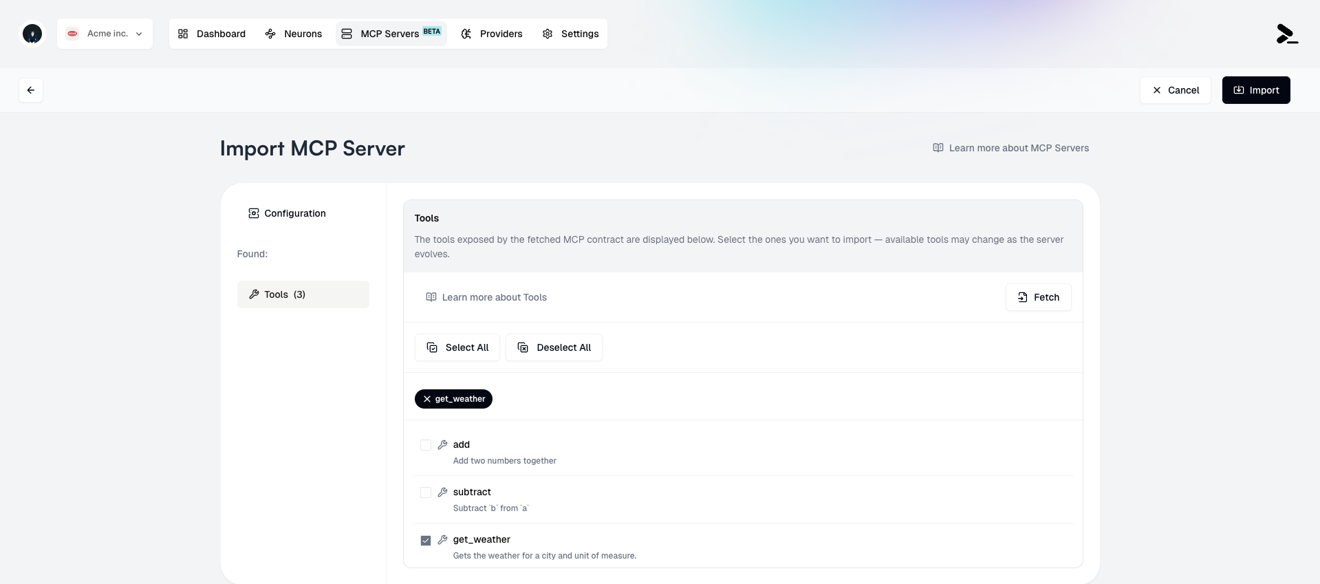If you have multiple MCP Servers imported, you can select multiple MCP Servers