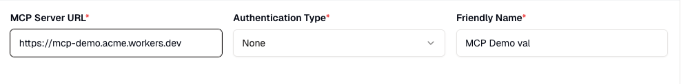- Authentication Type: The authentication type for the MCP Server (default is None).